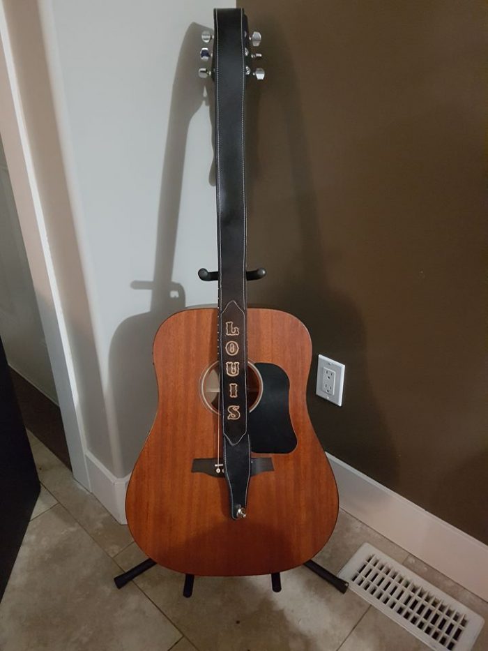 The collaborative journey with Louis began with a desire to encapsulate the essence of Hillside Outlaws’ music and Louis’s individuality in bespoke leather creations. Enlight Designs, known for its commitment to quality and personalization, set out to craft a custom-made leather guitar strap and keychain that would symbolize the unique journey of this talented artist and his band.
